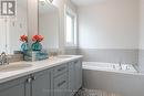 This nearly new build, move-in-ready home offers modern design, premium finishes, and comfort. Built by Pinnacle Quality Homes, this corner-lot residence in one of Stratfords family neighbourhoods delivers approximately 2,500 sq. ft. of stylish living space.The open-concept main floor boasts a chef-inspired kitchen with stone countertops, a chic tile backsplash, and abundant prep and storage space. The kitchen flows seamlessly into the dining and living rooms, anchored by a cozy gas fireplace. Sliding doors open to a wrap-around deck overlooking a fully fenced backyard, complete with gas BBQ hookup and private hot tub ideal for entertaining or unwinding under the stars. Upstairs, four generous bedrooms include a luxurious primary suite with walk-in closet and spa-like 5-piece ensuite featuring a glass shower and oversized soaking tub. The finished lower level adds 750 sq. ft. of versatile living, perfect for family movie nights with a built-in projector, drop-down screen, and convenient 2-piece bath. Additional features include main floor laundry/mudroom, a double car garage, private driveway, Avon school district, parks, advanced water filtering system and neighbourhood amenities. This home is truly move-in ready just unpack and start living. Don't miss your chance to own this exceptional property in a vibrant, family-friendly community. Contact your REALTOR today to schedule a private showing! (id:27)